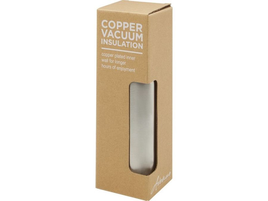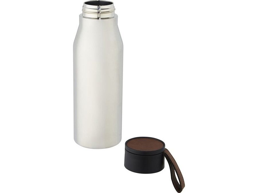 Термобутылка из нержавеющей стали с медной вакуумной изоляцией, выполненная в классическом и элегантном дизайне. Имеет ремешок из искусственной кожи ПУ и элемент на крышке. Идеальный вариант для лазерной гравировки, чтобы выделить логотип серебристым цветом и создавать красивый визуальный эффект. Благодаря двустенной конструкции, медной вакуумной изоляции и нержавеющей стали 18/8 напитки долгое время остаются горячими или холодными. Протестировано и одобрено согласно немецкому законодательству о безопасности пищевых продуктов (LFGB), а также проверено на содержание фталатов согласно нормам REACH. Объем 500 мл. В коробке из переработанного картона.