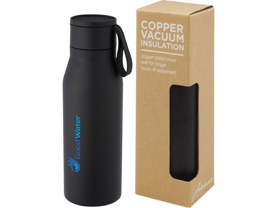 Термобутылка из нержавеющей стали с медной вакуумной изоляцией, выполненная в классическом и элегантном дизайне. Имеет ремешок из искусственной кожи ПУ и элемент на крышке. Идеальный вариант для лазерной гравировки, чтобы выделить логотип серебристым цветом и создавать красивый визуальный эффект. Благодаря двустенной конструкции, медной вакуумной изоляции и нержавеющей стали 18/8 напитки долгое время остаются горячими или холодными. Протестировано и одобрено согласно немецкому законодательству о безопасности пищевых продуктов (LFGB), а также проверено на содержание фталатов согласно нормам REACH. Объем 500 мл. В коробке из переработанного картона.