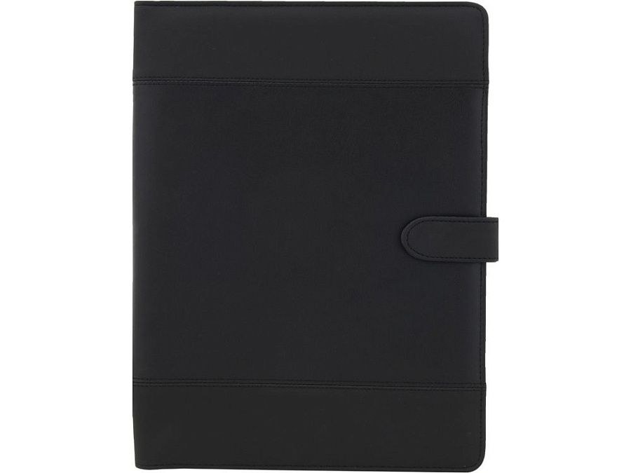 Стильная папка для документов с блокнотом и карманом под визитки - практичный бизнес-аксессуар, который обязательно пригодится. Папка закрывается на кнопку. На папку можно нанести символику организации при помощи тиснения.