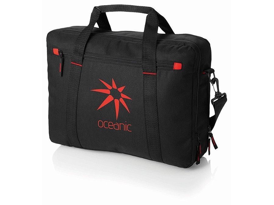 Широкая сумка Vancouver для ноутбука 15,4 дюйма. Сумка с двумя отделениями на молнии с мягкой подкладкой для большинства ноутбуков 15,4". Отделение на молнии для документов с передним карманом на молнии. Съемный регулируемый плечевой ремень. Две ручки. Полиэстер 600D.
