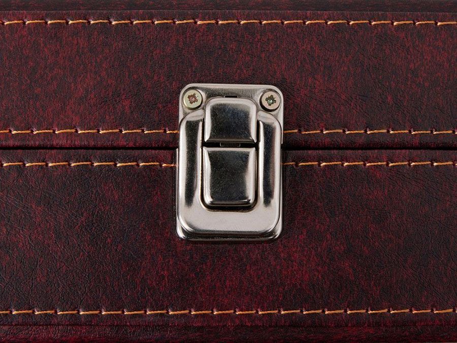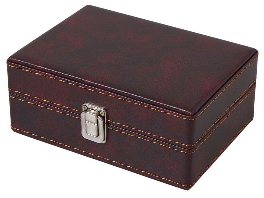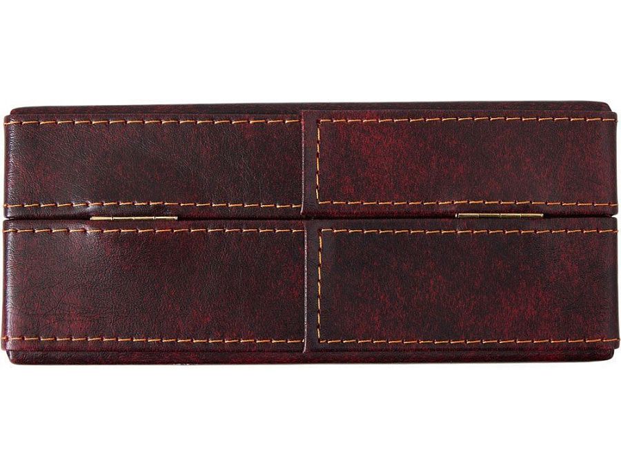 Подарочная упаковка: Набор представлен в жестком футляре из бордовой сплит- кожи с поролоновым ложементом, который гарантирует сохранность аксессуаров и подчеркивает ценность подарка.