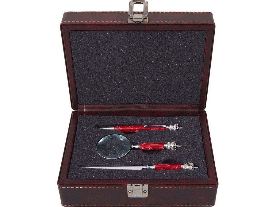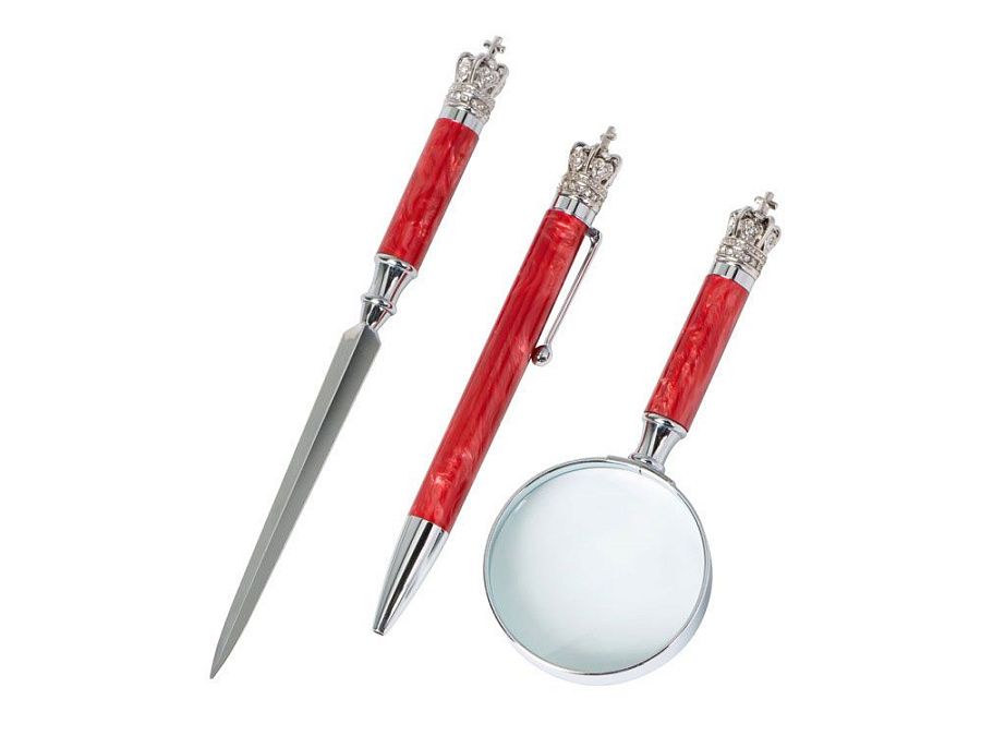 ручка шариковая d1,1 х 13 см, лупа d5 х 12,1 см, нож для бумаг d1,1 х 16,5 см