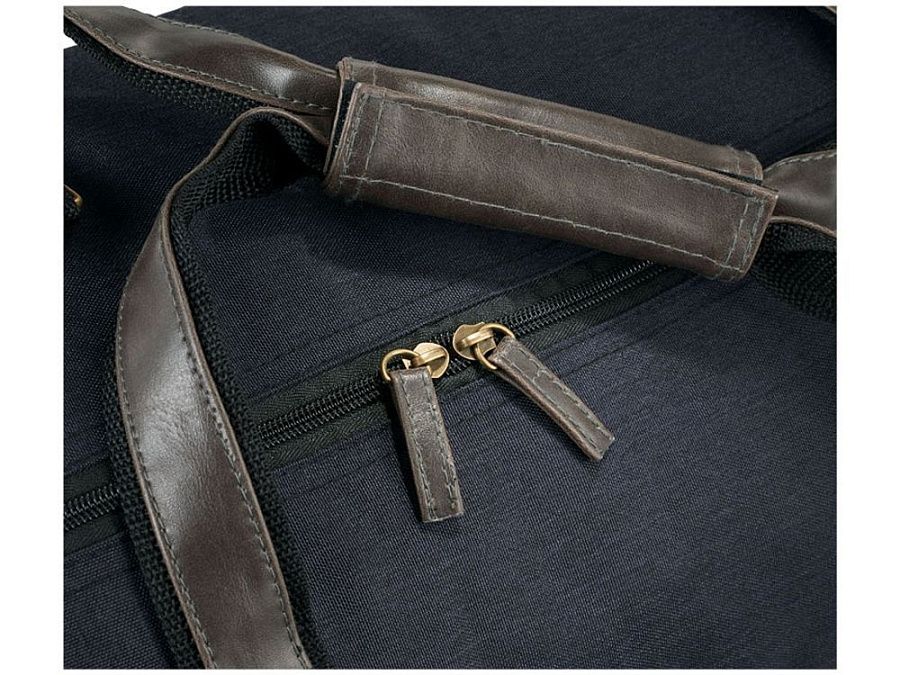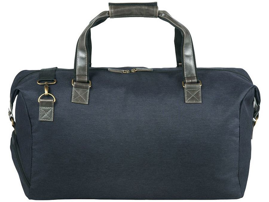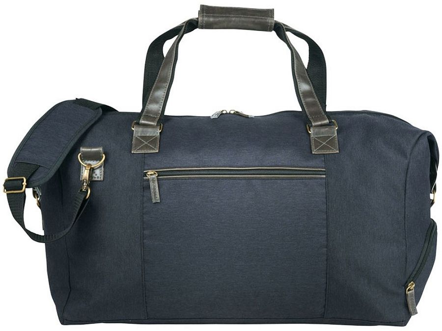 Дорожная сумка Capitol. Обозначьте свой особый стиль с коллекцией сумок Capitol. Сочетание современного и классического дизайна. Основное отделение на молнии, отделение для обуви на молнии, передний карман на молнии, твердое дно в комплект не входит. Отстегивающийся регулируемый ремень на плечо. Виниловые аксессуары для дополнительных возможностей нанесения. 600D полиэстер.