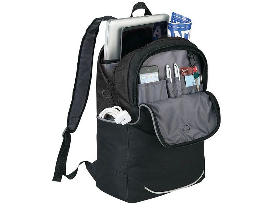 Рюкзак Benton для ноутбука 17". Рюкзак для ноутбука 17"Benton с большим основным отделением на молнии и карманом для планшета. Большой передний карман с отверстием для наушников, органайзером для ручек, визиток, технических аксессуаров и других мелочей. Ручка сверху и регулируемые плечевые ремни. 600D полиэстер.