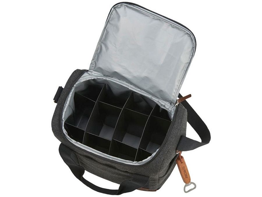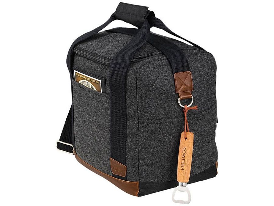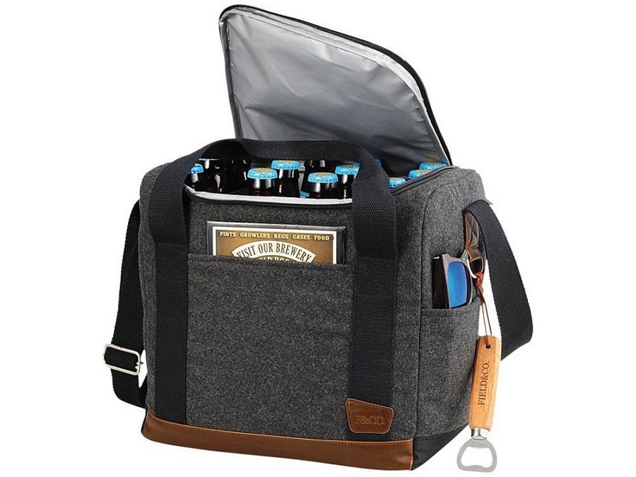 Campster кулер для 12-ти бутылок. Часть серии Campster от бренда Field & Co.®. Вдохновение было заимствовано из ретро-кемпинга, образ школьного скаута дополнен современными потребностями. Эта стильная сумка-кулер сочетает в себе шерсть /полиэстер и виниловые акценты с функцией изолированного кулера с разделителем бутылок. Вставки создают отдельные отсеки для двенадцати бутылок емкостью 350 мл. Когда они не используются, их можно сложить на дно сумки. В комплекте открывалка Field & CO. Полиэстер и шерсть.