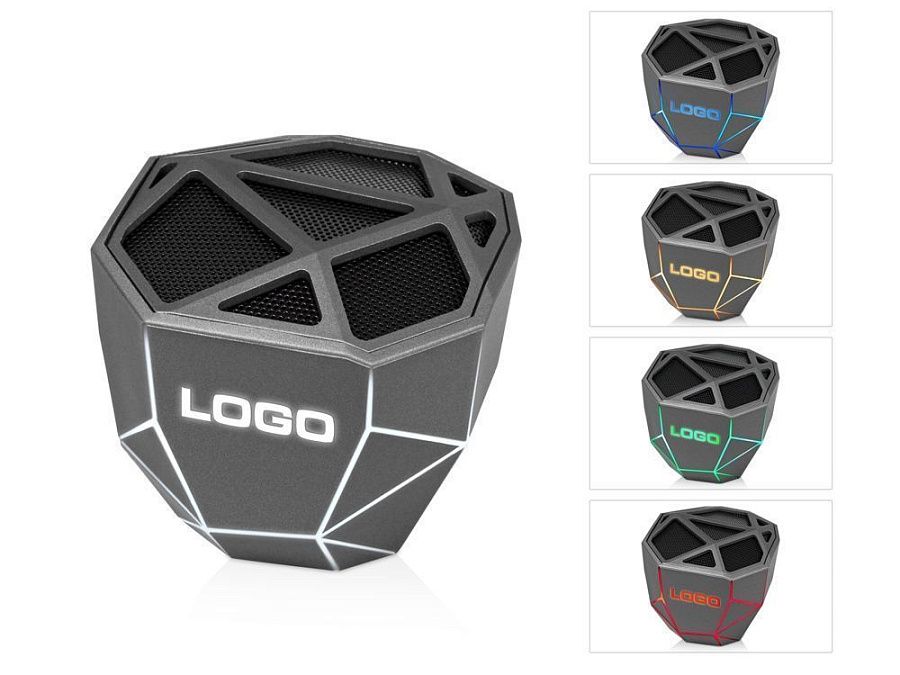 Беспроводная портативная колонка “Geo” с функцией расширенных басов изготовлена в дизайнерском стиле low-poly. Форма революционного Bluetooth-динамика напоминает мистический кристалл, а подсветка различных цветов (белая, синяя, красная, зеленая, оранжевая) добавляет таинственности. При этом ее яркость зависит от воспроизводимой музыки. Подсветку можно легко поменять, сделав три быстрых нажатия на кнопку включения и произойдет настоящая магия у вас в руках.