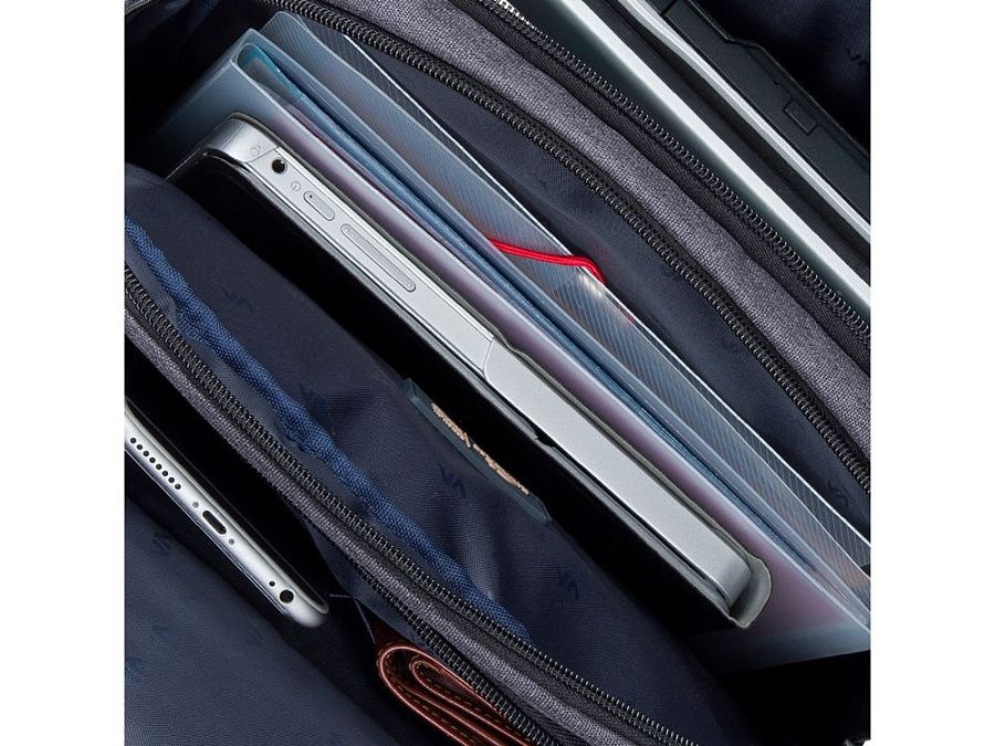 • Внешнее переднее отделение на молнии для хранения аксессуаров, также оборудовано панелью-органайзером для хранения визитных карт, флэш-накопителей, смартфона. Также на передней панели карман на молнии для различных мелочей.