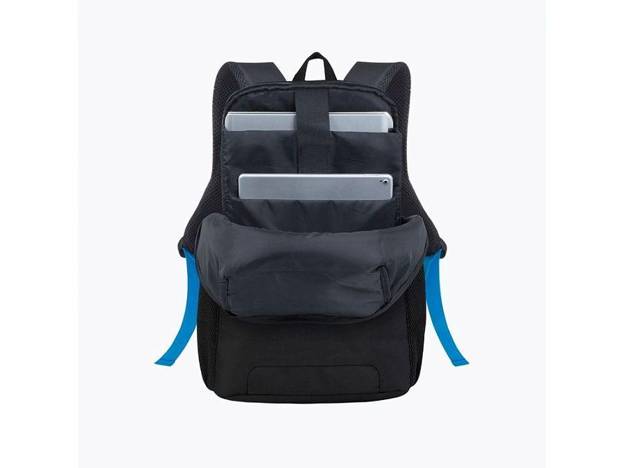 • Основное отделение для ноутбука с вертикальной загрузкой, имеет мягкие стенки и ремень для надежной фиксации ноутбука до 15.6.