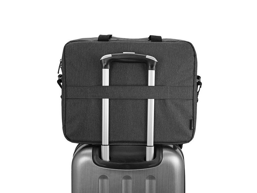 • Ремень на задней стороне позволяет надежно прикрепить сумку к ручке чемодана на колесиках.