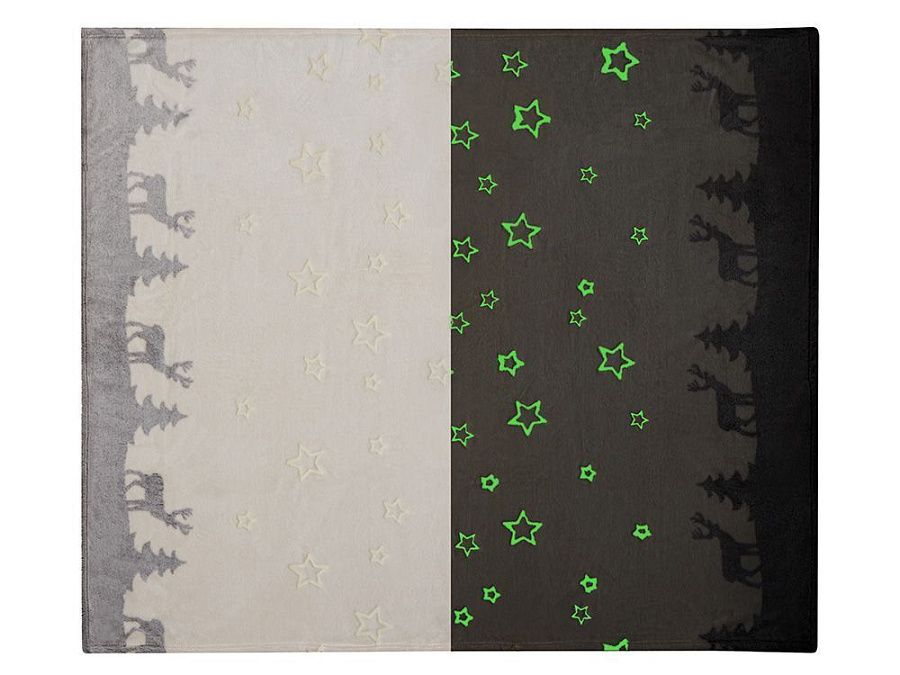 Размер 130х150 см, мягкий приятный на ощупь флис, новогодний принт светится в темноте, создаст уютную обстановку дома, подойдет под любой интерьер, согреет в прохладную погоду.