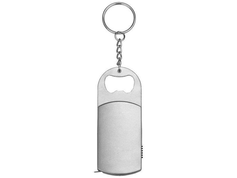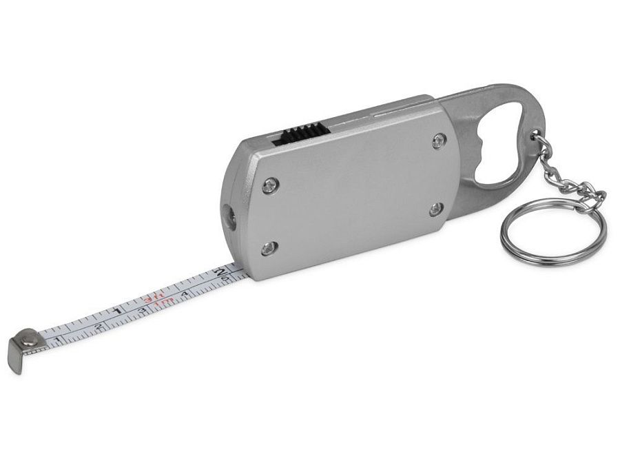 Несмотря на внешнюю простоту, этот аксессуар - настоящий многофункциональный подарок 3-в-1. Брелок состоит из рулетки 1м, прочной металлической открывашки и небольшого, но яркого фонарика.