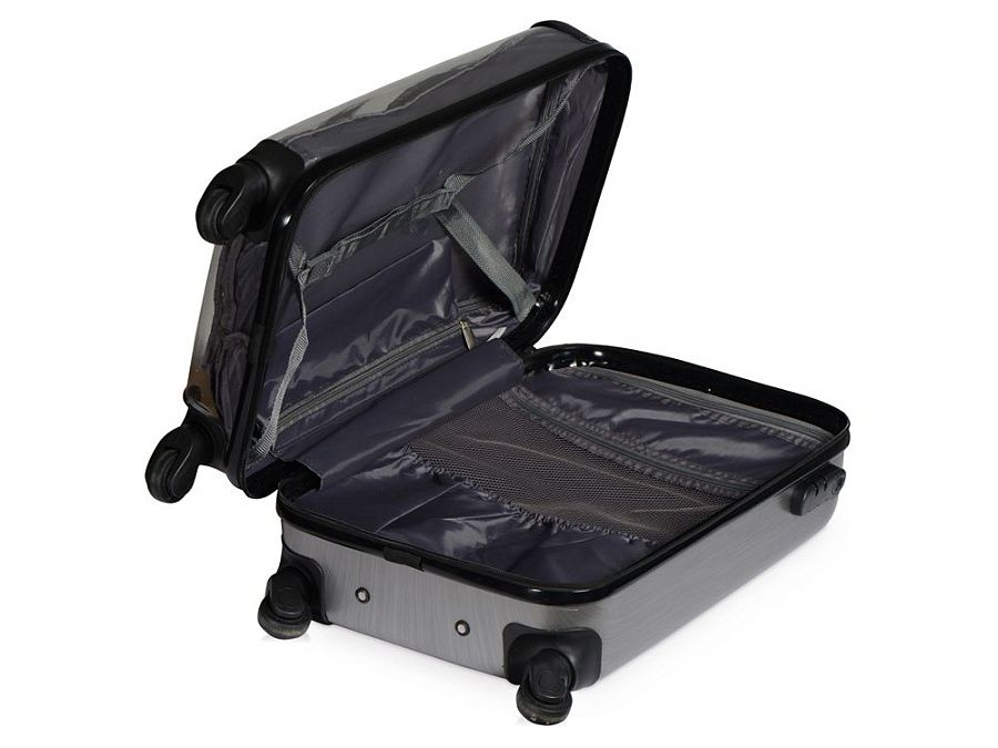 Удобен и незаменим для поездок на любые расстояния, можно брать в салон самолета благодаря компактному размеру, который был специально разработан в соответствии с требованиями большинства авиакомпаний. Одна боковая сторона из прозрачного пластика с возможность размещать бумажную вставку с вашим нанесение, 2 вместительных отделения - одно на молнии с чехлом, второе - с ремнями для фиксации одежды. На подкладке 2 внутренних кармана на молнии для хранения мелочей.