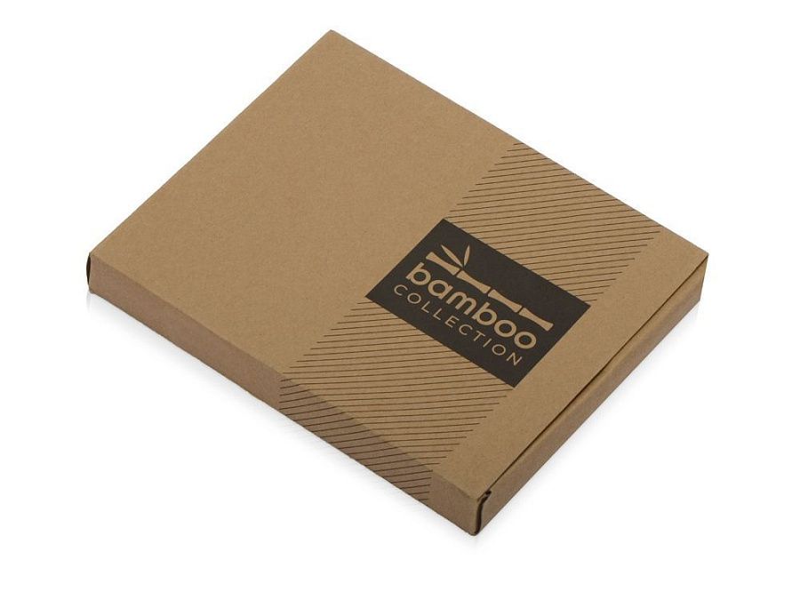 Набор с блокнотом и ручкой изготовлен из экологически чистых натуральных материалов. Обложка блокнота и корпус ручки из натурального бамбука, листы из переработанной бумаги.
