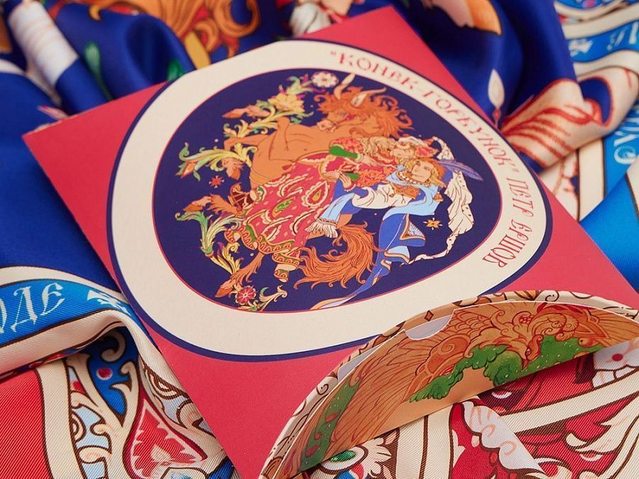 Прочитав сказку юного дарования, сам великий Александр Сергеевич Пушкин сказал: «Этот род сочинений я могу теперь оставить» - и Петр Ершов был принят в круг петербургских писателей.В этом году сказке из золотого фонда русской литературы, переведенной на все языки мира, исполняется 185 лет. Ее яркие краски мы перенесли на шелк и создали платок «Конек-Горбунок».