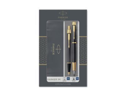 Перьевая ручка или шариковая? – Теперь не нужно выбирать! В новый подарочный набор Parker IM Core входят сразу оба пишущих инструмента! Элегантный корпус ручек выполнен из нержавеющей стали с черным лаковым покрытием, отделка деталей – позолота. Перьевая ручка оснащена стальным пером (толщина пишущего узла – средняя, M) и поставляется с 1 синим картриджем. Шариковая ручка имеет кнопочный механизм нажимного действия, в ручке стоит фирменный стержень Паркер синего цвета, толщина линии M (средняя). Набор идеально подойдет в качестве подарка или знака внимания.