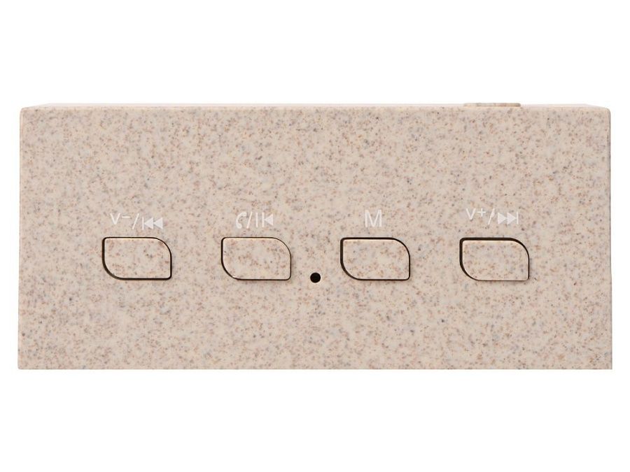 Беспроводная колонка "Wheatty" на 35% состоит из переработанной пшеничной соломы, что является положительным примером сокращения производства и потребления пластика в мире. Воспроизводит музыку в течение 3-х часов. Мощность 3 Вт. В колонке предусмотрены кнопки управления и линейный вход (AUX). Компактная колонка с быстрым подключением (Bluetooth 5.0). Поставляется в крафт упаковке из переработанной бумаги.
