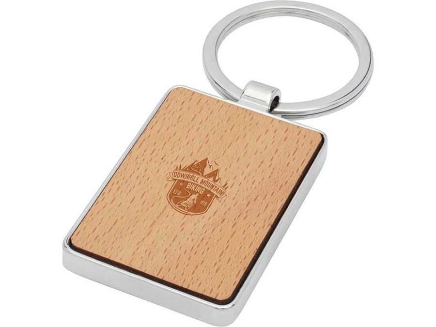 Прямоугольный брелок премиум-качества из буковой древесины с металлическим корпусом из цинкового сплава, поставляемый в коричневой упаковке из шрифтовой бумаги. Размер 4 x 3 см. Пригоден для лазерной гравировки.