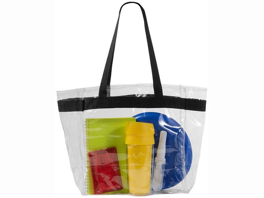 Эта прозрачная сумка отлично подходит для фанатов, которые предпочитают безопасно паковать свои принадлежности для стадиона и мероприятий. Она также подходит для работы и школы. Открытое основное отделение со спортивной сетчатой отделкой и двумя ручками. Высота ручек 27 см. Принадлежности не включены. ПВХ.