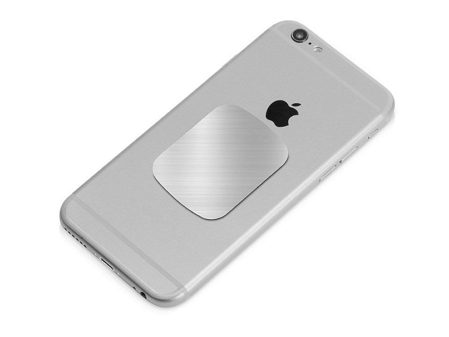 Магнитный держатель для телефона крепится к вентиляционной решетке автомобиля при помощи прищепки, которая снабжена прорезиненными вставками для плотного сцепления с поверхностью. Также в комплекте идут 2 самоклеящиеся стальные пластины. Они крепятся к смартфону.