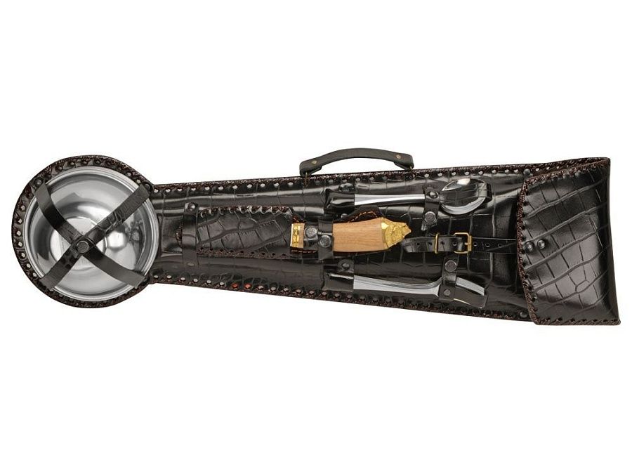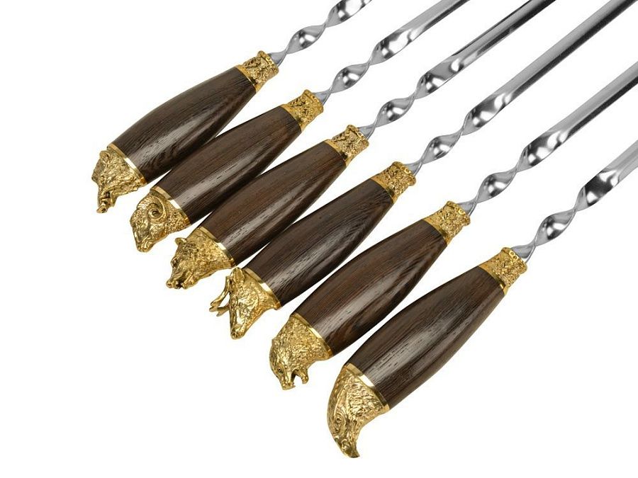 тарелка, стопка- 6шт, нож в чехле, ложка- 6шт, вилка- 6шт, топор, ножки для мангала- 2шт, шампур- 6 шт