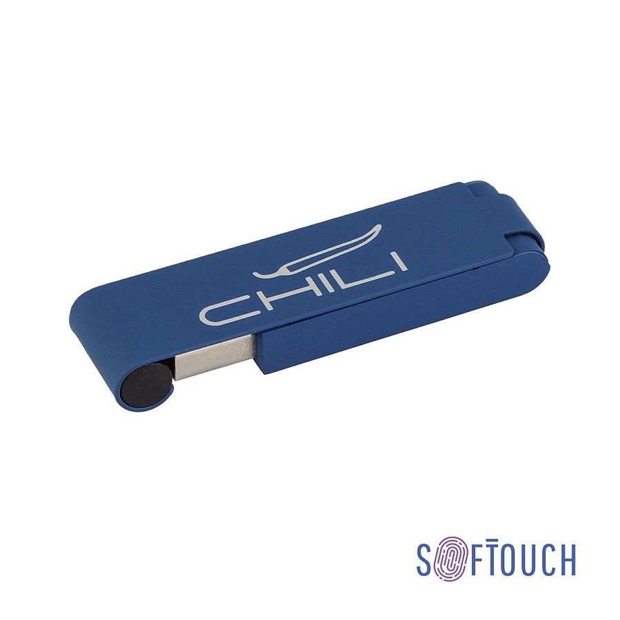 Флеш-карта оригинального дизайна. Полностью прорезиненный (softtouch/софттач) корпус и клип. Небольшой круглый магнит с обратной стороны клипа удерживает флешку в закрытом состоянии.