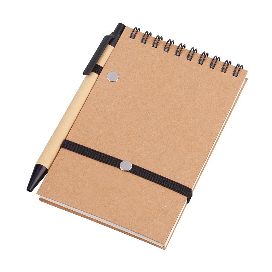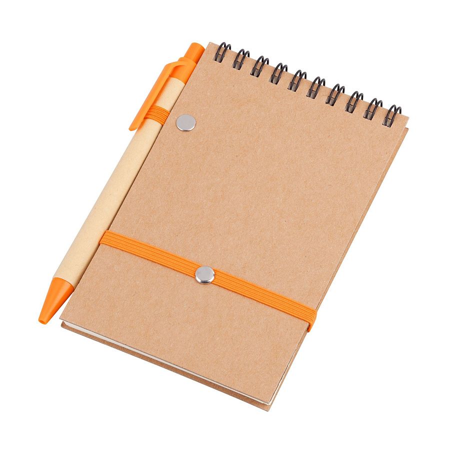 Блокнот - переработанный картон, ручка - переработанный пластик, паста черного цвета, 70 листов, без разлиновки