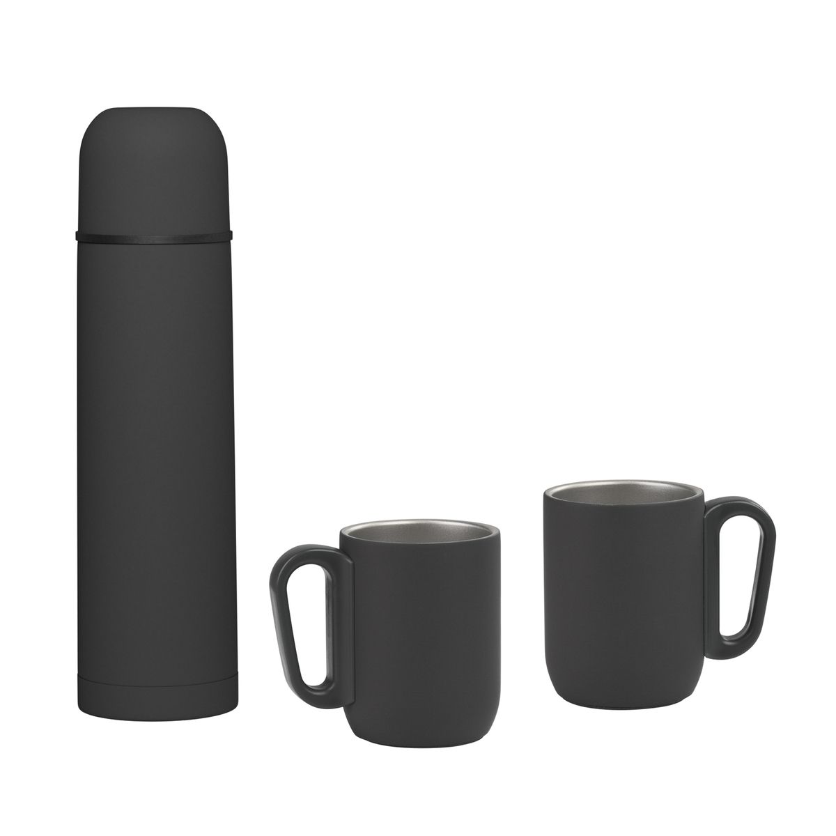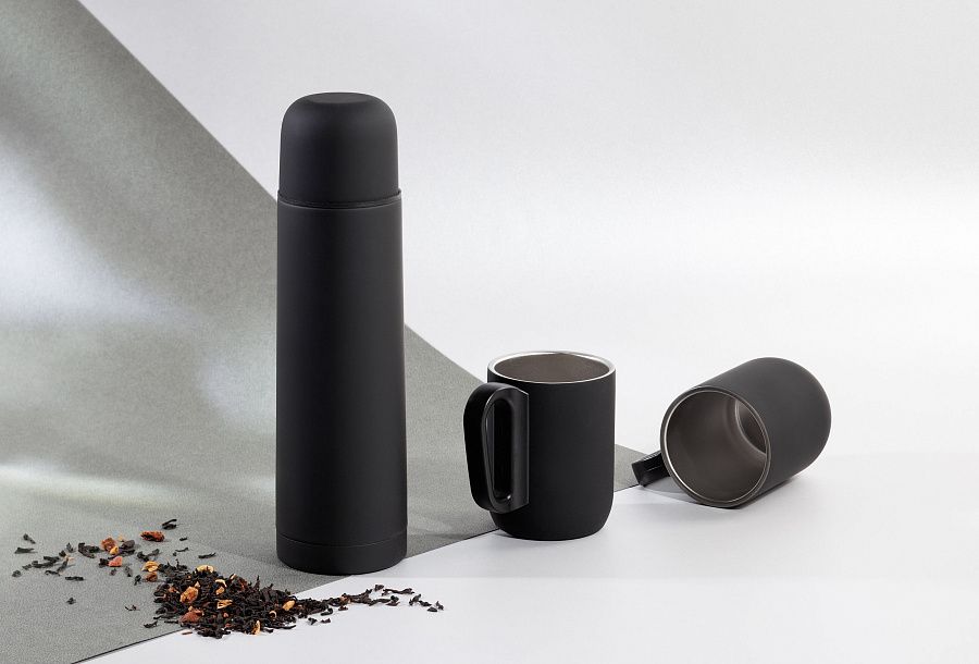 Набор «Гейзер» состоит из термоса, двух кружек и переносной сумки-чехла. Набор изготовлен из пищевой нержавеющей стали с прорезиненным напылением soft-touch, благодаря которому термос не скользит в руках. Сумка-чехол с регулируемым ремешком дополнительно сохранит температуру, защитит набор от внешних неблагоприятных факторов и сделает вид более презентабельным. Набор «Гейзер» обладает широкими возможностями персонализации на сумке-чехле, термосе и кружках. Гармоничный дизайн набора «Гейзер» и его функциональность приятно удивят получателя.