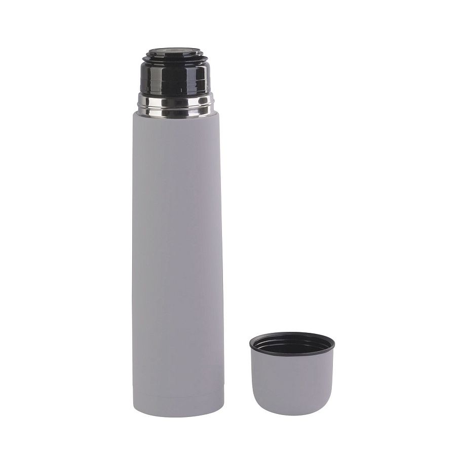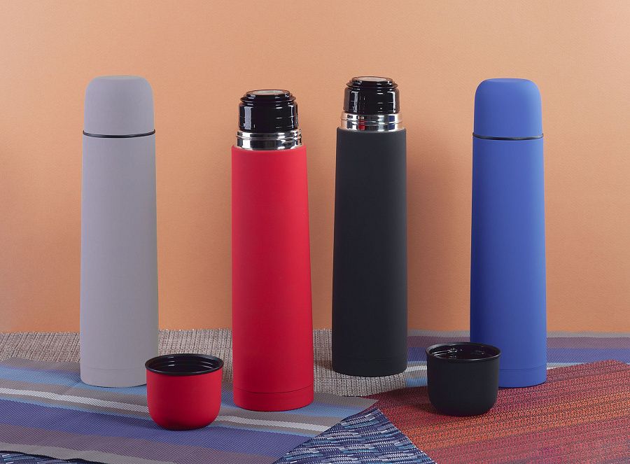 Внешняя стенка термостакана изготовлена из нержавеющей стали с уникальным прорезиненным напылением soft-touch, а внутренняя стенка выполнена из  высококачественной пищевой, нержавеющей стали. Корпус изделия персонализируется по окружности встык. Термос оснащен пробкой с клапаном, которая позволяет наливать напиток одним нажатием.