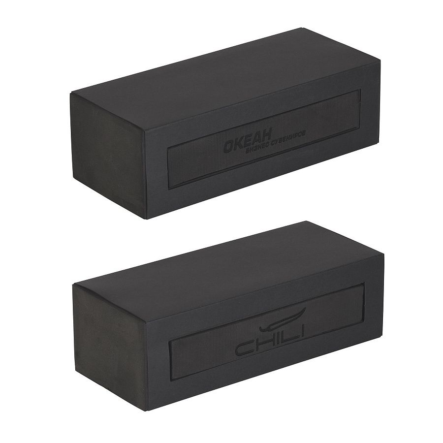 НОВИНКА коллекции CHILI - Зарядное устройство "Theta" и флеш-карта "Vostok" в оригинальном футляре-конструкторе из материала EVA. Особого внимания заслуживает конструкция упаковки - комплектующие набора укладываются в двусторонний ложемент, который также можно персонализировать методом гравировки (газовый СО-лазер). Футляр закрыт шубером из черного картона. Рекомендуем посмотреть 3D-фото для детального представления об устройстве упаковки.