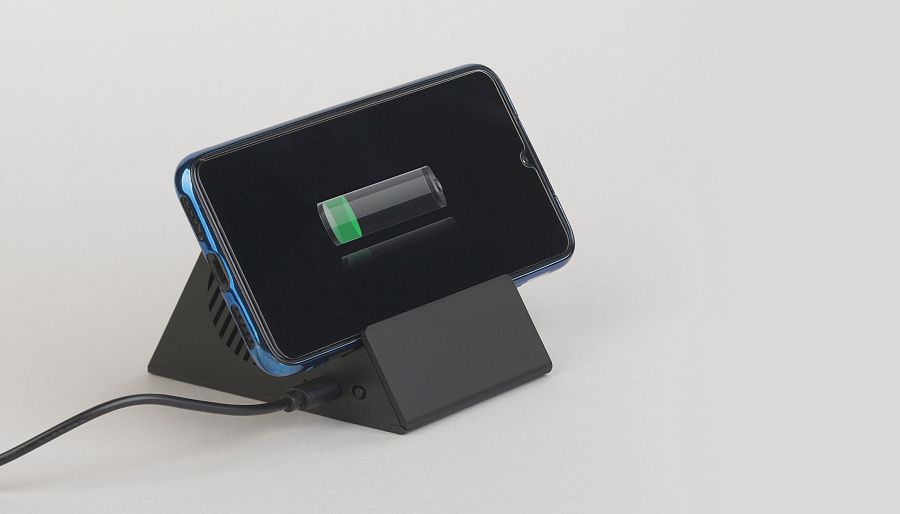Компактная колонка-подставка совмещает в себе уникальный дизайн, хорошее качество звука и популярную, удобную функцию беспроводного заряда!