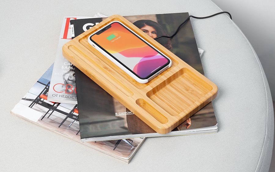 Природный натуральный материал + современная технология беспроводного заряда = трендовый актуальный подарок!