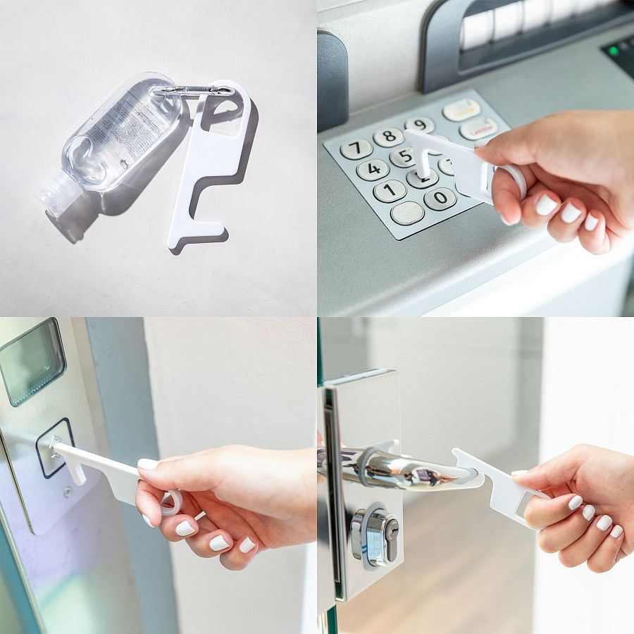 Антибактериальный защитный брелок из прочного АБС пластика определенно станет фаворитом в связке ключей. Тачер разработан специально для того, чтобы сократить количество прикосновений к поверхностям общественного пользования: дверные ручки, переключатели, платёжные терминалы и др.