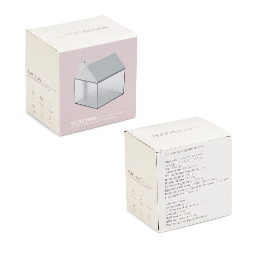 Sweet Home – это компактный полезный помощник в создании уюта и поддержания уровня влажности в комнате. Увлажнитель представлен в оригинальном исполнении – в форме маленького «домика»