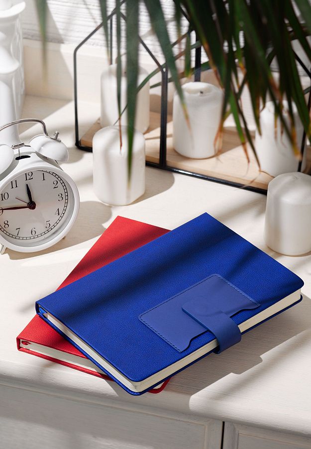 На лицевой стороне ежедневника предусмотрен карман для карт, записок, визиток. Чтобы заметки и записи были под контролем, а пользователь в любой момент мог внести новую информацию - у "Монти" предусмотрена петелька для ручки. Кроме того, ежедневник закрывается на магнитный хлястик.
