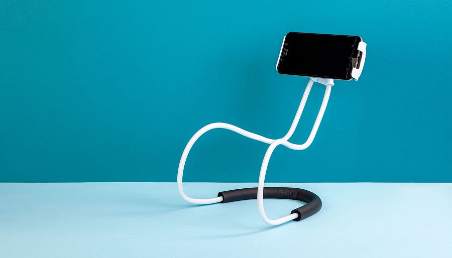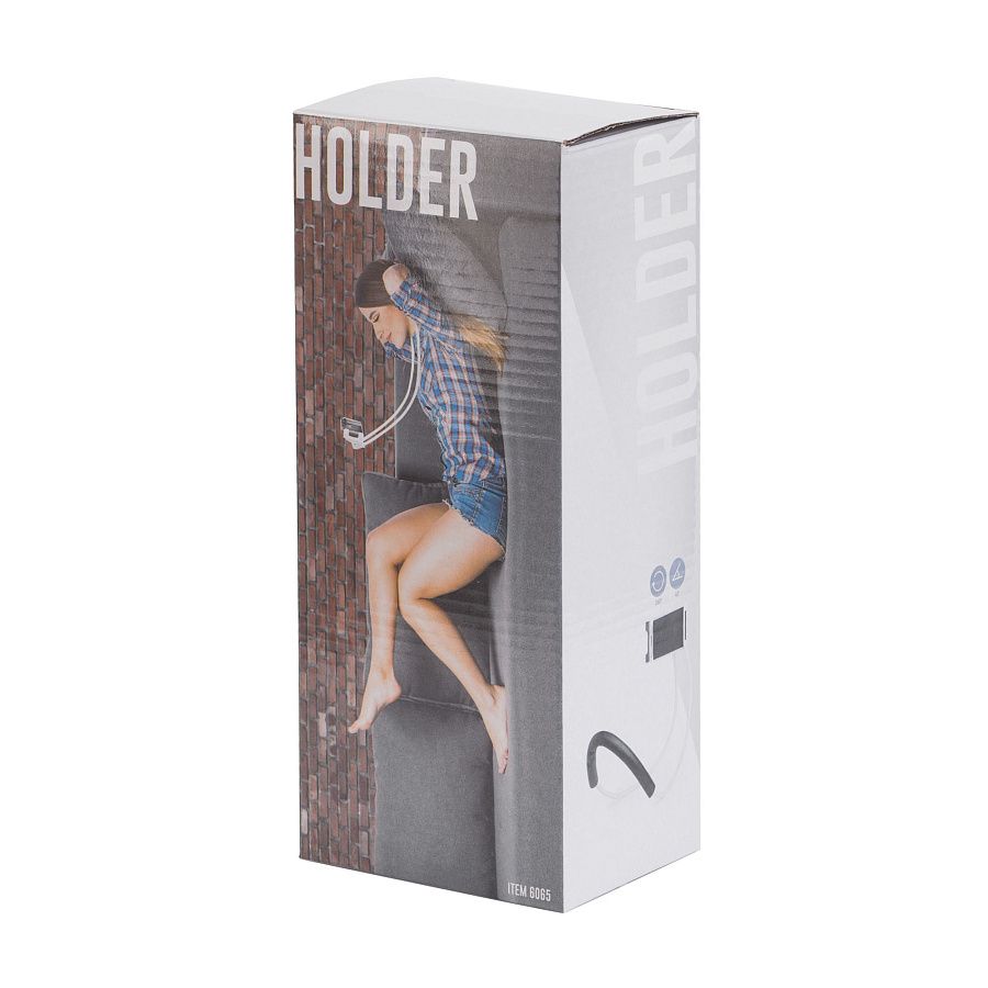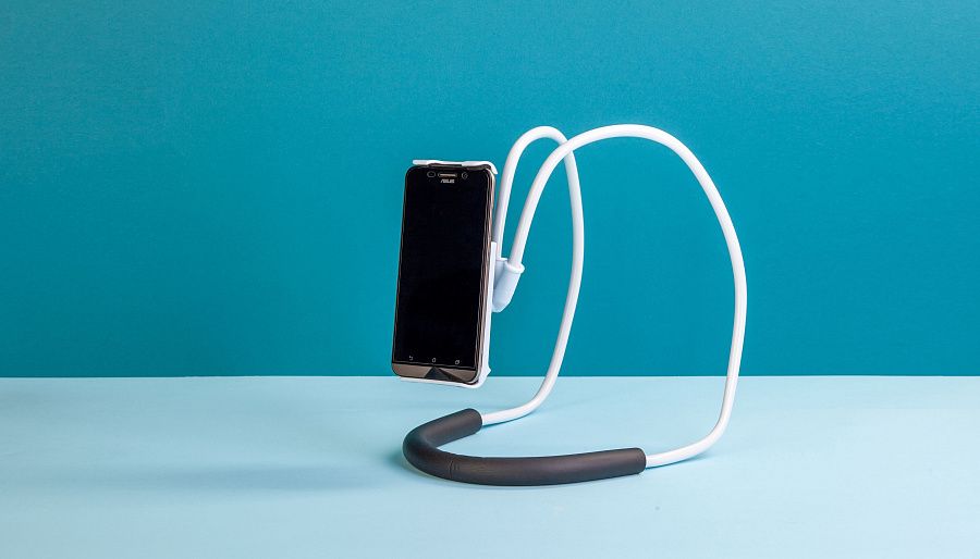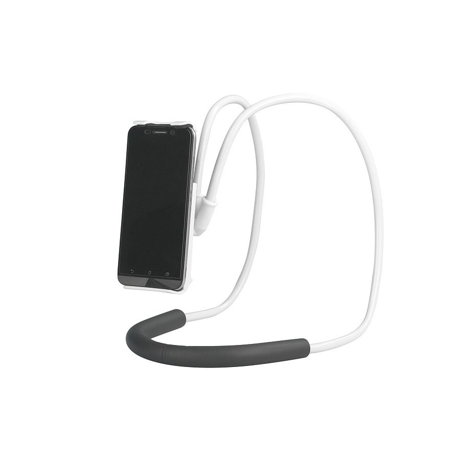 Универсальный держатель для мобильных устройств. Раздвижной захват подходит для устройств размером от 12,3 до 19,5 см. Гибкая конструкция позволяет задать нужную форму, использовать аксессуар как держатель телефона в удобном положении и как настольную подставку. Мягкая нескользящая вставка снижает нагрузку на шею.