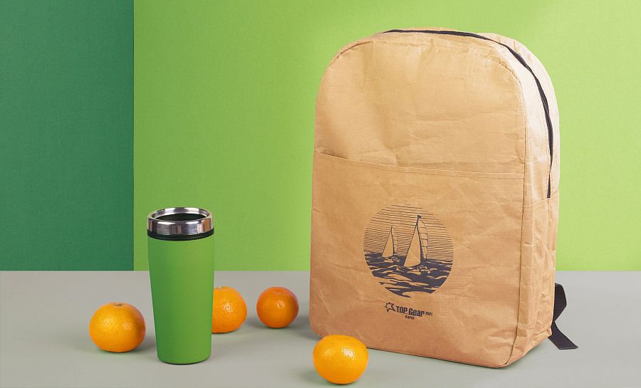 Экологичный дизайнерский рюкзак выполнен из необычного крафт-материала, который устойчив к влаге.