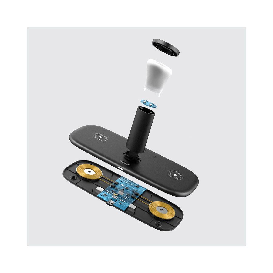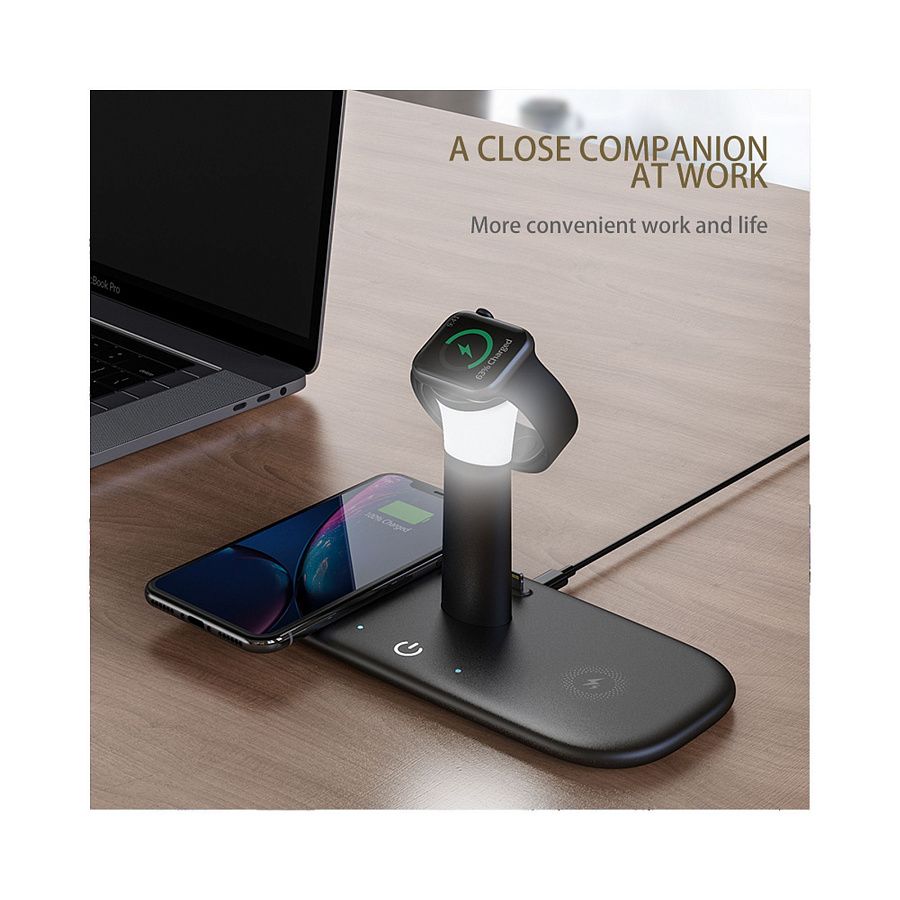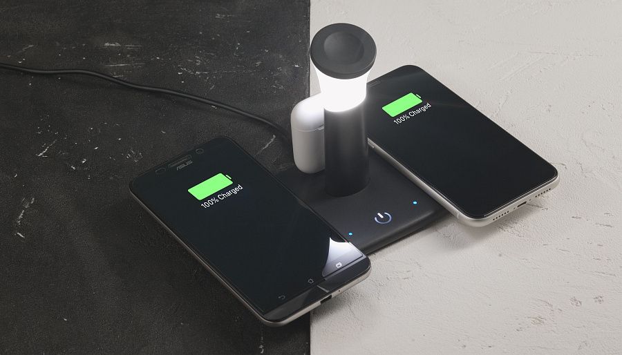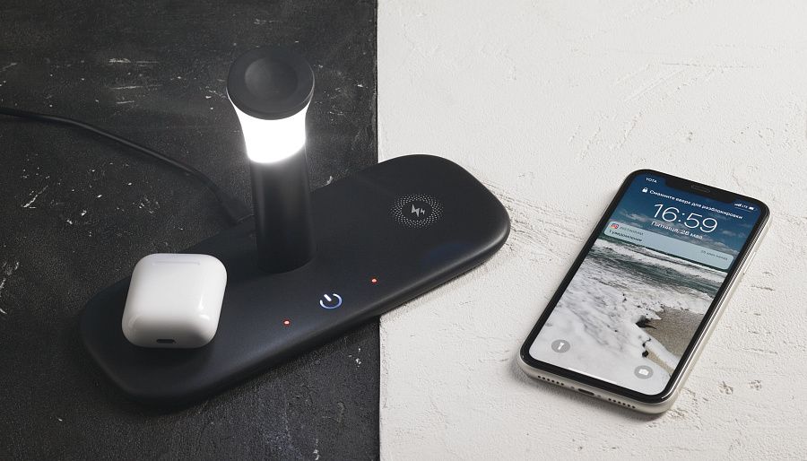 Настольная зарядная станция - это компактное решение для одновременной быстрой 15W беспроводной зарядки смарт-часов (Apple watch), наушников и смартфонов. У лампы доступны 2 режима освещения: холодный свет и теплый свет. В каждом из режимов можно регулировать яркость света. Блок быстрой (до 15W) беспроводной зарядки смартфона обозначен двумя молниями; блок, обозначенный одной молнией, заряжает с мощностью 5W. Желательно перед использованием ознакомиться с инструкцией.