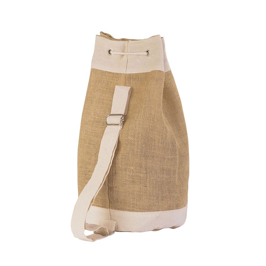 Рюкзак "Jute universal" из джута и хлопка 120 гр/м2. Универсальная форма, регулируемая плечевая лямка. Хлопковый карман спереди для удобства нанесения.