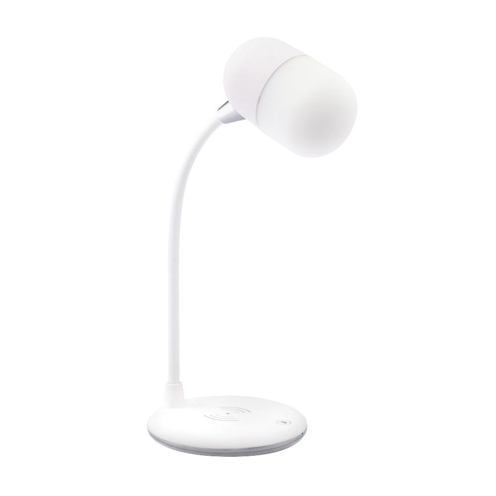 Настольная лампа с колонкой и беспроводной зарядкой Alladin. Тип светодиодного индикатора: cветодиодная панель (яркость 28LM±2), три режима настройки света (яркий, теплый, холодный), 7 светодиодов. Мощность беспроводной зарядки: 5 Вт. Максимальная мощность беспроводного зарядного устройства: 5/10 Вт (опционально). Мощность динамика: 3 Вт. Вход:5V/3A. Версия Bluetooth: V5.0. В комплекте кабель USB и инструкция.