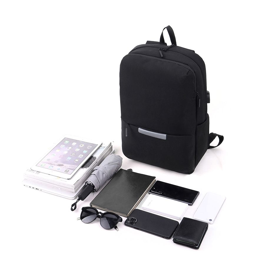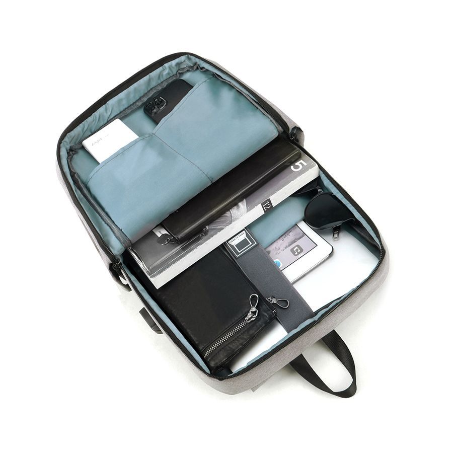 Одно большое отделение закрывается молнией со скрытым звеном. Внутри большой уплотненный карман для ноутбука 15 дюймов с клапаном-резинкой на велькро и карман-органайзер для мелких аксессуаров. На передней стенке большой карман с клапаном на велькро. Сбоку открытый карман и USB-разъем с проводом для подключения внешнего аккумулятора. Уплотнённая короткая ручка для дополнительного комфорта рук. Уплотнённые плечевые ремни регулируются по длине.
