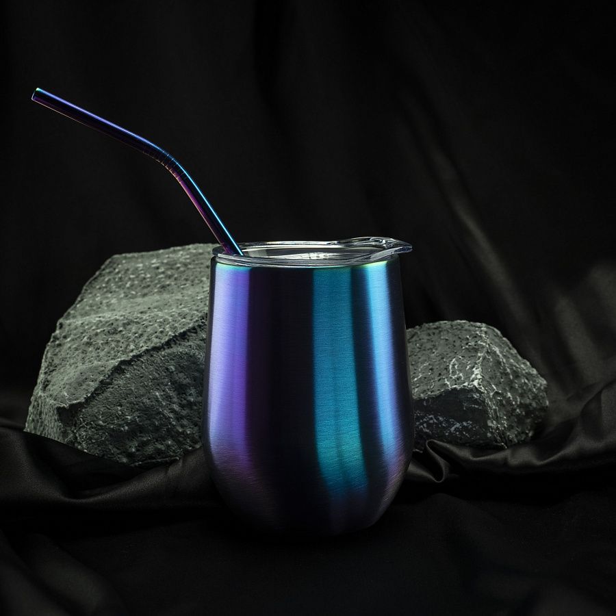 Характерная обтекаемая форма с расширяющейся нижней частью придает коферу оригинальность. Благодаря этой форме, кофер можно использовать для любых напитков: вода, чай, кофе, вино, коктейли - наливайте в кофер все, что захотите, напиток надолго сохранит свою температуру и вкус.