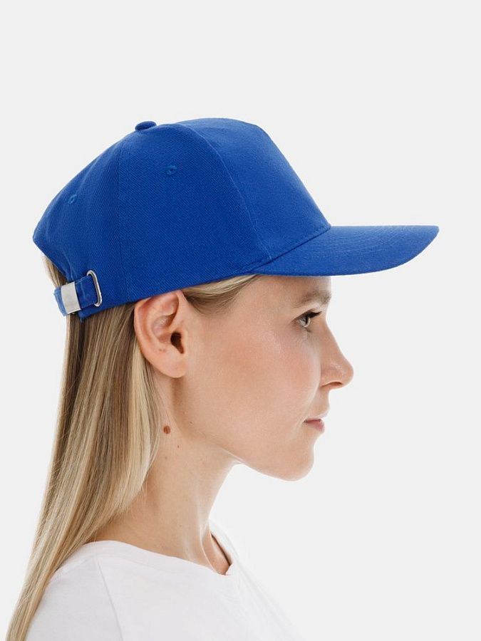 Модель бейсболки с 5-ю клиньями без лобового шва из плотного чесаного хлопка.