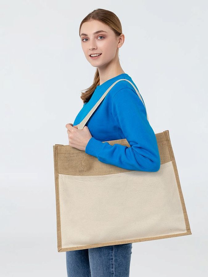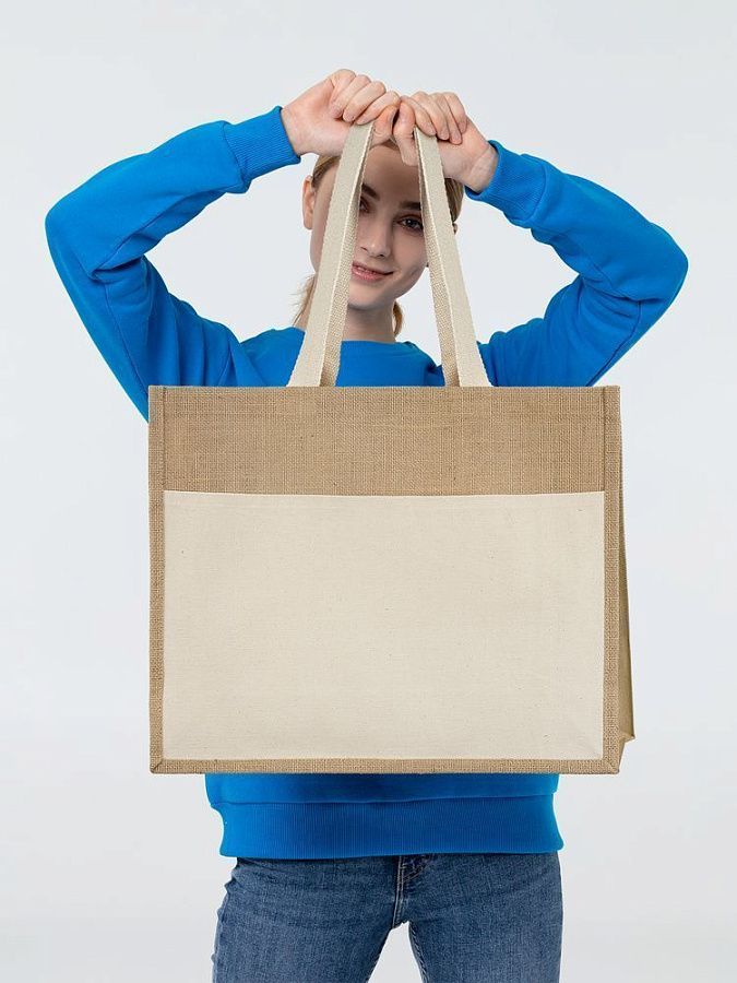 джут, плотность 240 г/м²; ручки, карман - хлопок 100%, плотность 280г/м²