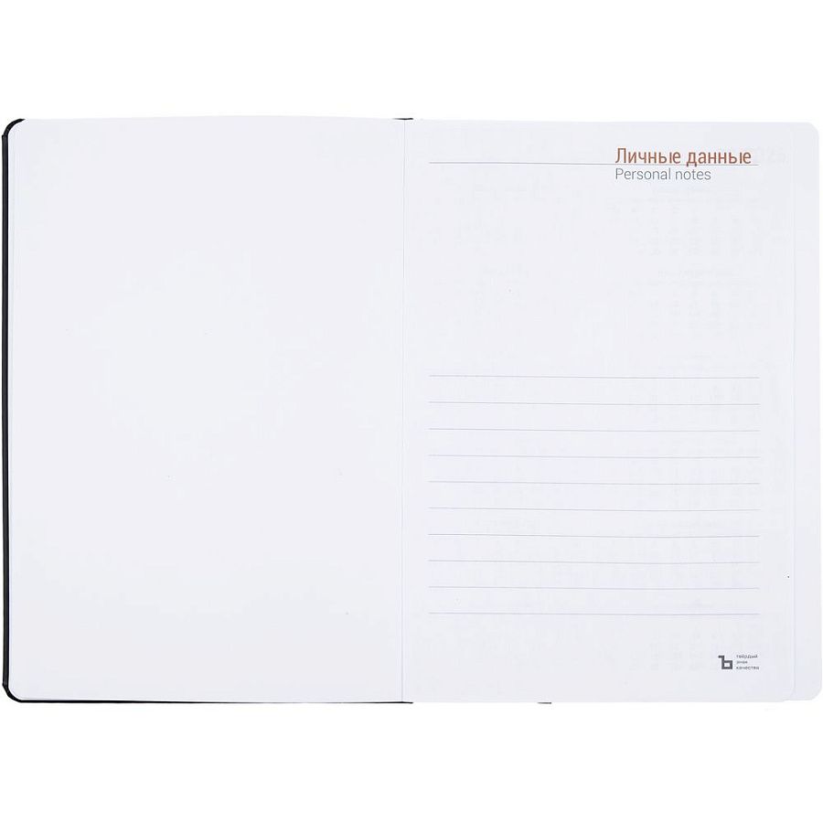 Ежедневник с твердой обложкой, выполнен из материала Latte, черный АА, дополнен ляссе в цвет обложки.