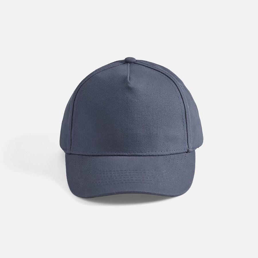 Модель бейсболки с 5-ю клиньями без лобового шва из плотного чесаного хлопка.