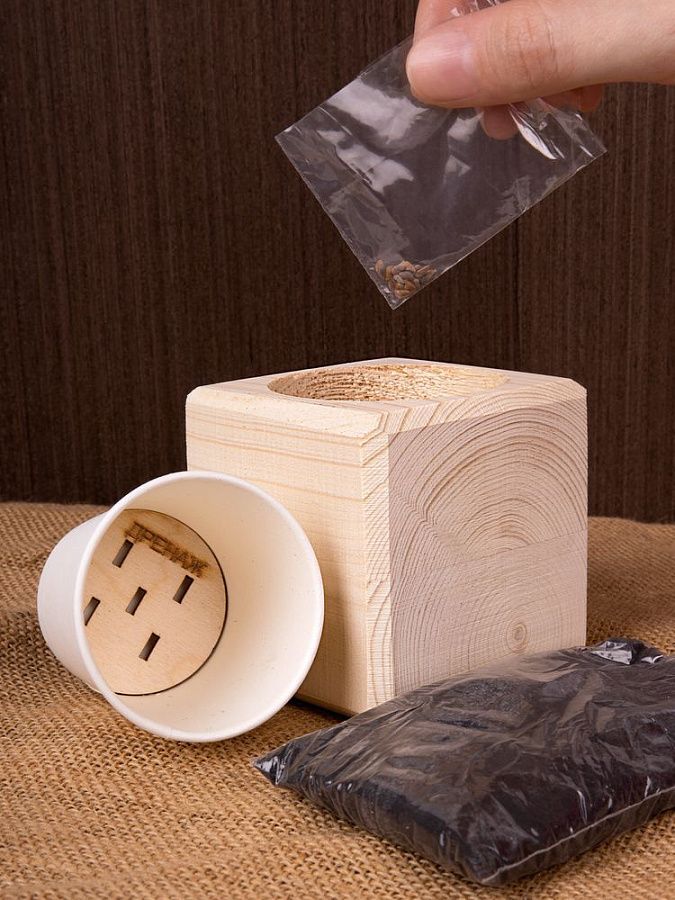 - Подарочные наборы для выращивания растений из дерева