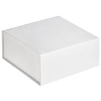 Коробка изготовлена из переплетного картона, кашированного дизайнерской бумагой Majestic Marble White, с крышкой на магните.