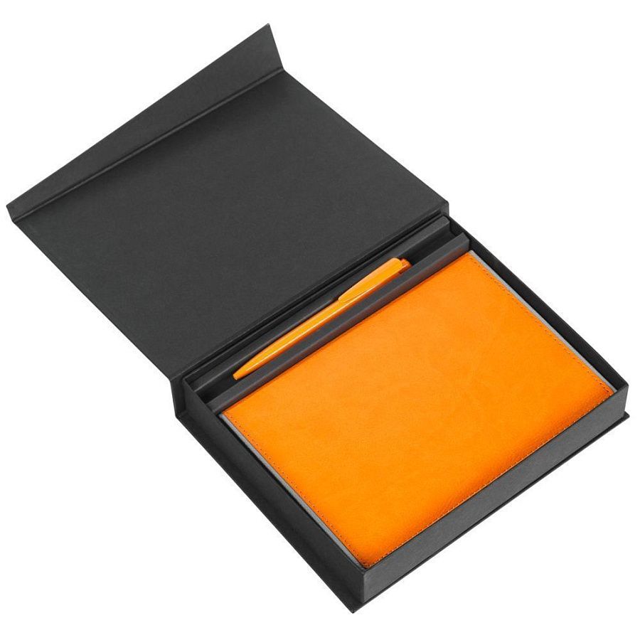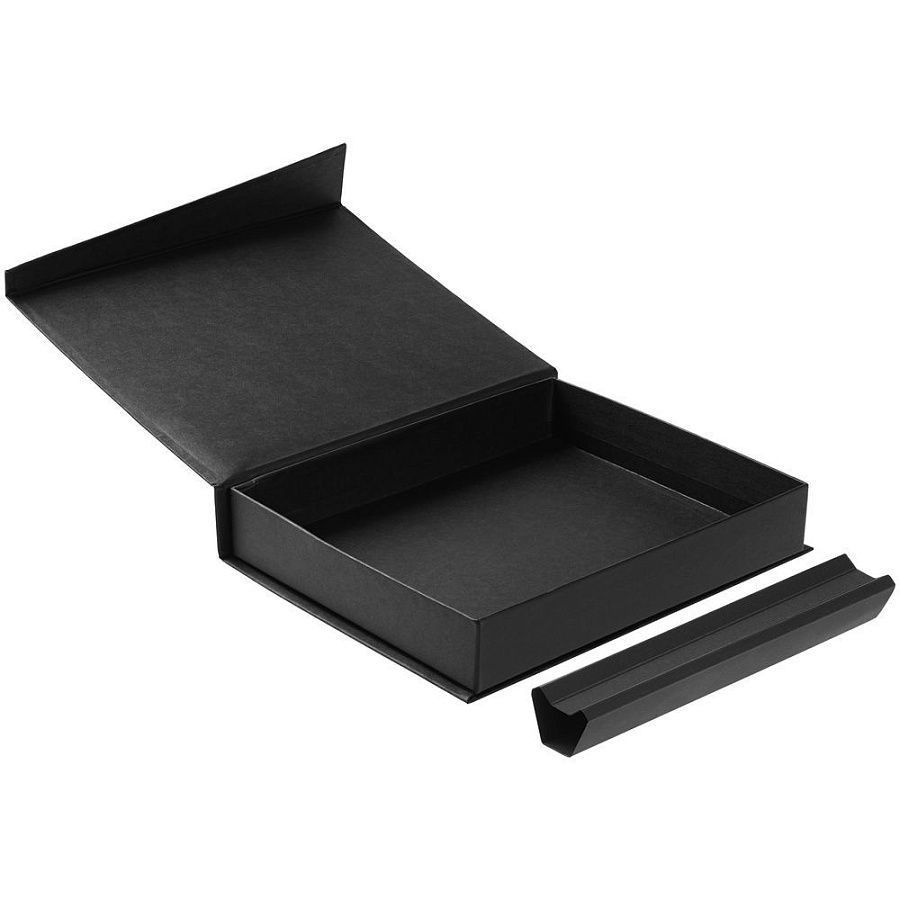 Коробка с клапаном на магните, выполнена из переплетного картона, кашированного гладкой дизайнерской бумагой Malmero.