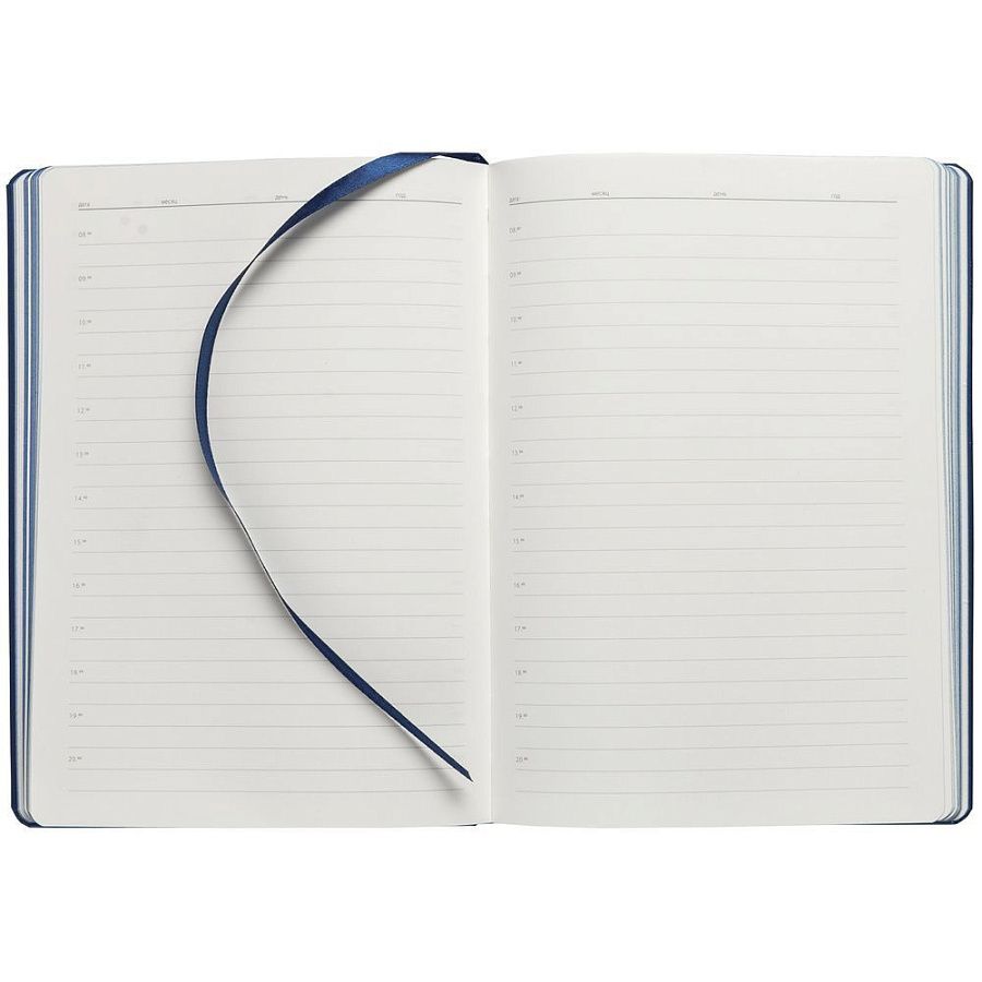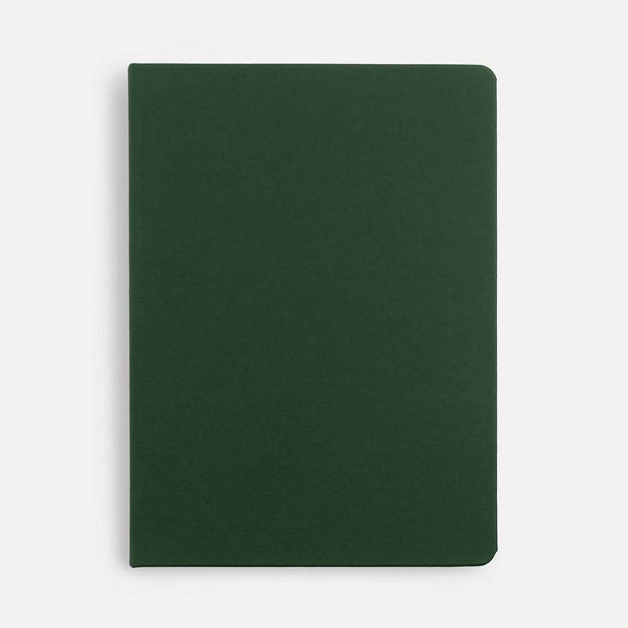 Ежедневник с твердой обложкой и тонированным обрезом, выполнен из материала Soft Touch, зеленый FF, дополнен ляссе в цвет обложки.