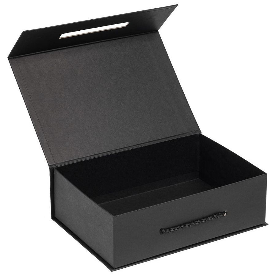 Коробка выполнена из переплетного картона, кашированного гладкой дизайнерской бумагой Kiris, с крышкой на магните.